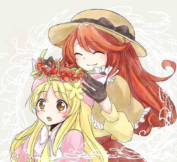 フリルちゃんを驚かせてみたくて後ろからお花の冠を乗せてあげました!